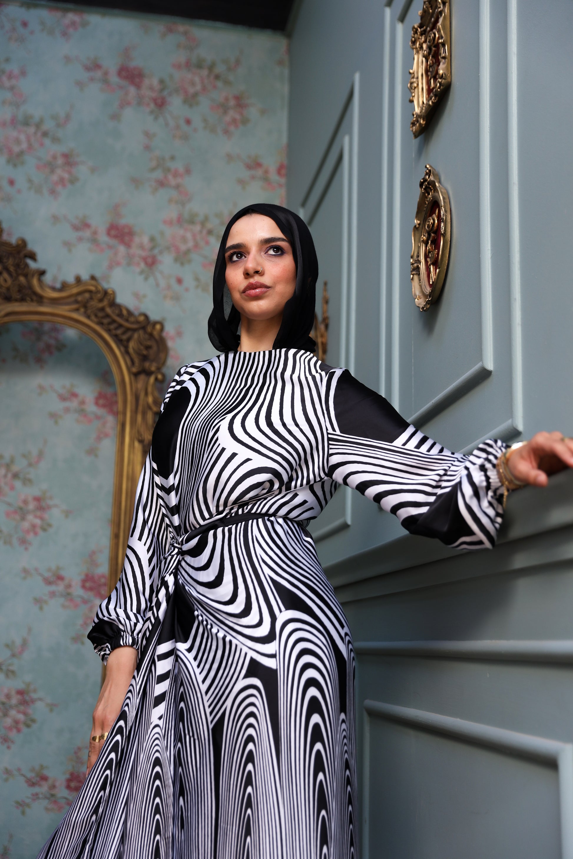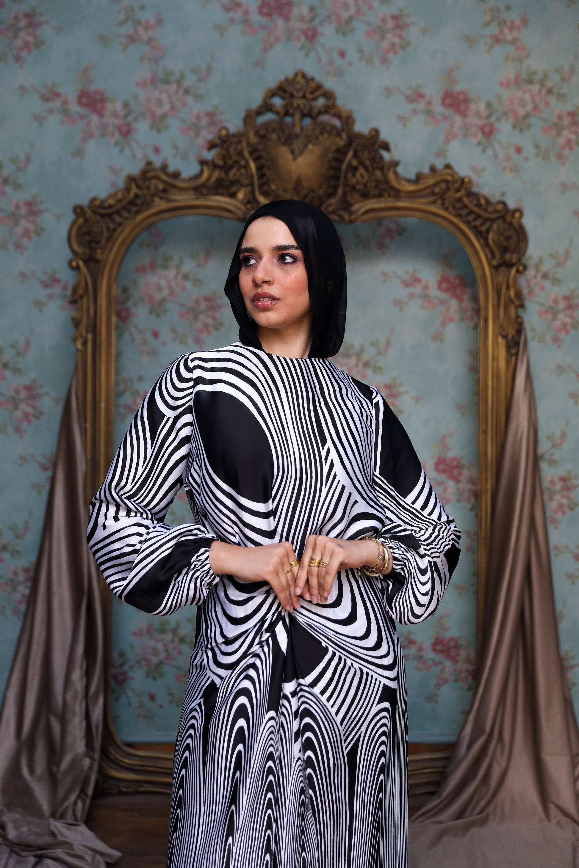 Fabric: Premium silky satin woven fabric — fluid drape with a subtle sheen, designed for timeless elegance.