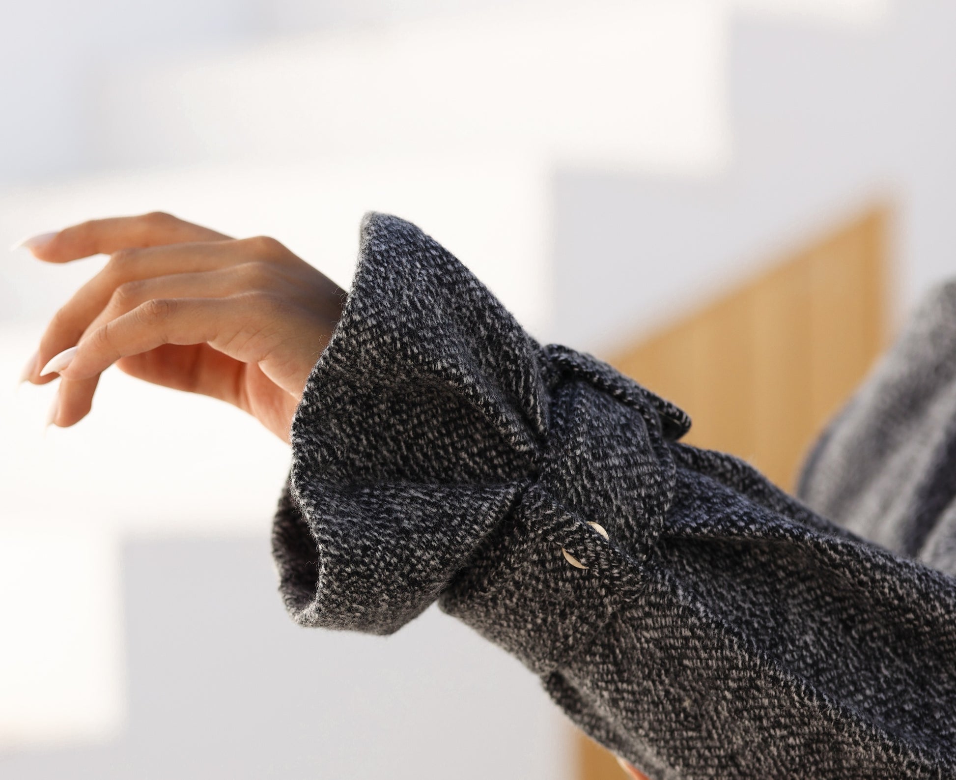 Its relaxed, oversized cut and eyelet detailing give it a modern yet refined look — perfect for layering through the cooler months.